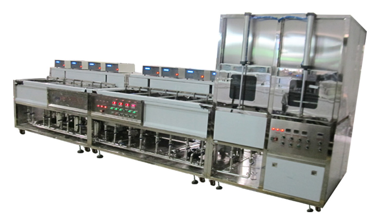 該清洗機(jī)主要由超聲波發(fā)生器、換能器、清洗槽、儲(chǔ)液槽、循環(huán)過(guò)濾系統(tǒng)、自動(dòng)恒溫加熱系統(tǒng)、拋動(dòng)系統(tǒng)、抽氣罩、冷水機(jī)、機(jī)架、電控柜等組成。