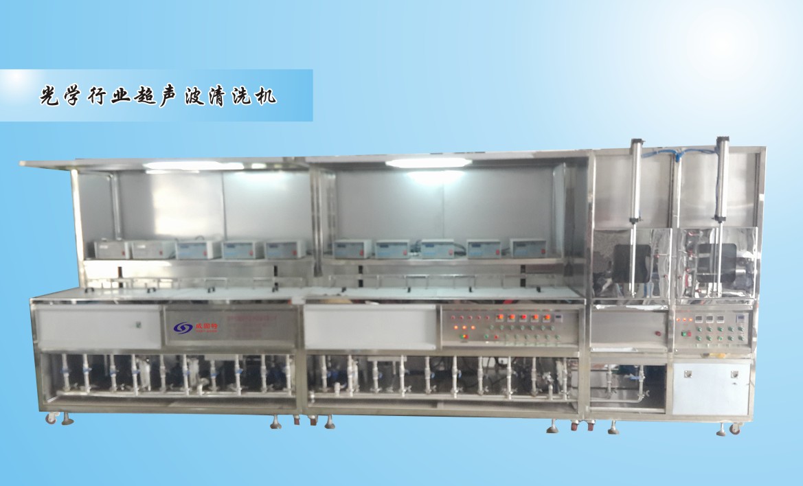 鍍膜行業——鍍膜前“鏡片”的生產流程之光學超聲波清洗機威固特鍍膜前光學超聲波清洗機,配置有拋動系統、循環過濾系統、自動恒溫拋動系統、超聲波清洗系統、定時系統、框架系統、C02滅火系統等。設備采用環保型水溶劑洗滌、純水漂洗,為環保星清洗系統。配電箱用全不銹鋼結構。