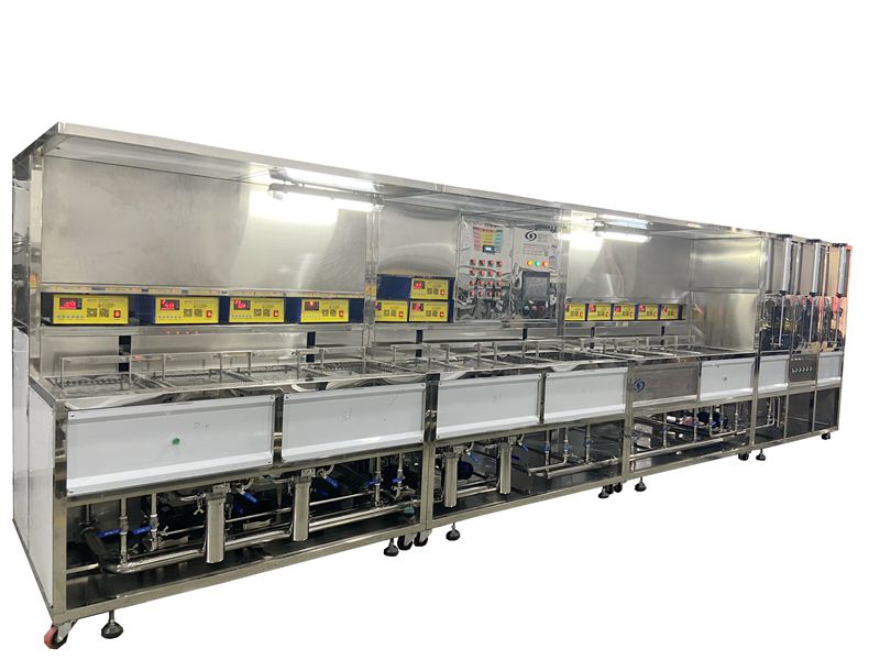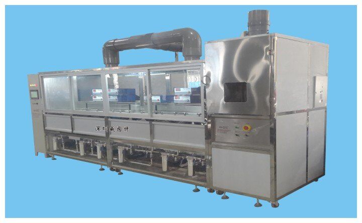 威固特VGT-609FTA超聲波清洗機,設備共有6個功能槽,配置有循環(huán)過濾系統(tǒng)(袋式過濾系統(tǒng))、觸摸屏系統(tǒng)、拋動系統(tǒng)、超聲波清洗系統(tǒng)、對流清洗系統(tǒng)、自動智能式撥桿機械手系統(tǒng)、風切系統(tǒng)等。